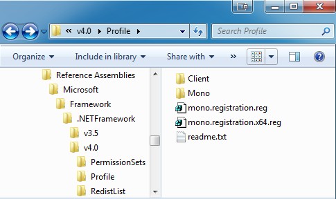 To get this working you’ll need to register mono as a profile, just like the client profiles from Microsoft.