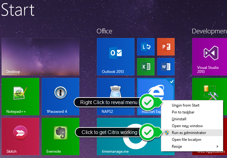 Citrix is not my expertise. I learned this the hard way. (= reading support) To gain access to a Citrix environment from Windows 8.1 follow the steps below.