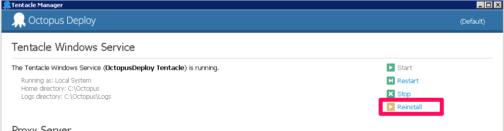 The solution is to reinstall the tentacle service.