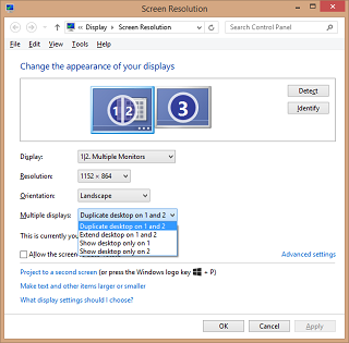 Using “Windows-Key + P” you can select the setup for one extra screen.