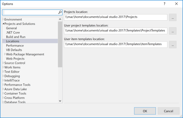 I’ve noticed strange behaviour before when the projects are located in the my documents folder. This is the default location for visual studio projects. In Parallels this location is mapped to the documents folder of the Mac user on the host machine. Windows 10 sees this as a network / mapped drive location and does not trust it by default.