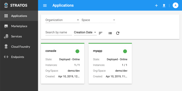 Now logon to Stratos on https://console.bosh-lite.com with Admin and the password from the first line in the previous script.