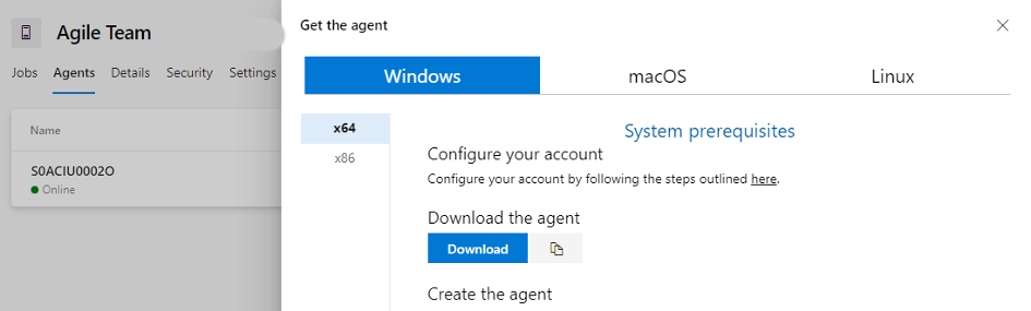 - Open the new created agent pool and go to tab Agents. Click “New agent” and download the Agent (=zip containing the software)
